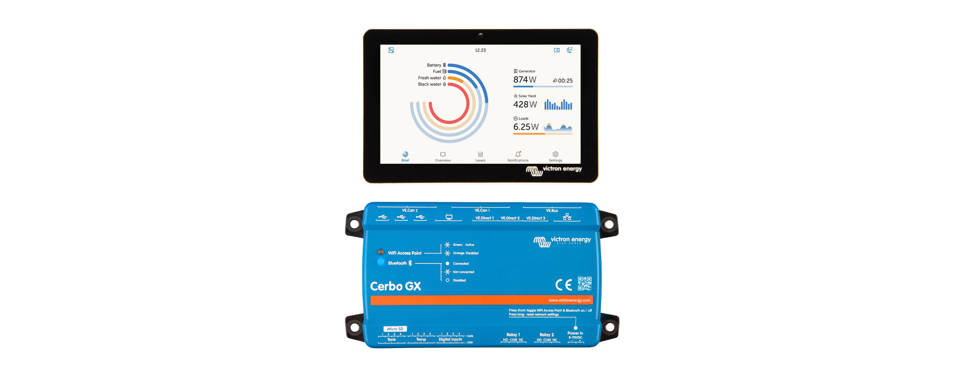 Goede monitoring is essentieel voor een betrouwbaar energiesysteem. Met producten zoals Cerbo GX, GX Touch en SmartShunt houd je continu zicht op prestaties, accuniveau en energieverbruik.
